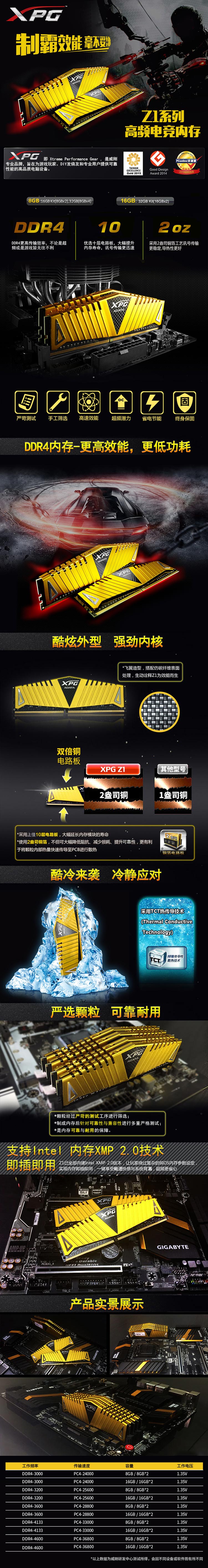 商品名称:威刚(ADATA)DDR4 3000 16GB (8GBx2)套装 台式机内存 XPG-Z1 游戏威龙(金色)