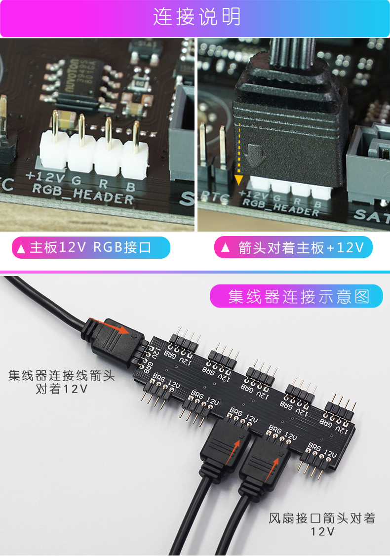 商品名称:宝璋 主板RGB集线器 1分10分线器 华硕 微星 技嘉AURA神光同步RGB风扇扩展机箱灯条集线器 12V 4针+30cm延长线