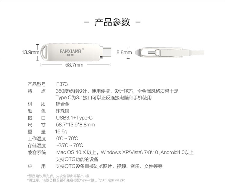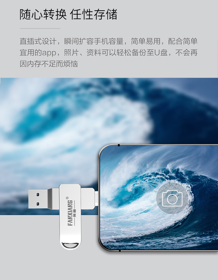 商品名称:梵想(FANXIANG)256GB Type-C USB3.1 手机U盘 F373 安卓手机电脑两用优盘